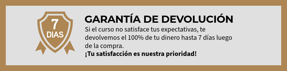 Si el curso no satisface tus expectativas, te devolvemos el 100% de tu dinero.